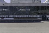 an airplane parked in a large, empty airport parking lot with glass walls and a sign saying we are not here