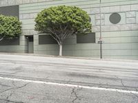 This photo features an empty city sidewalk in Los Angeles, California. As you walk down the street, you can see three trees in front. The modern architecture of the buildings in the residential area provides a contemporary urban design. The asphalt road surface and the grey curb add to the overall aesthetic of the scene. The surrounding vegetation provides shade and adds a touch of nature to the urban setting.