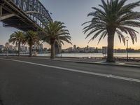 Empty City Street with Bridge, Water, and Palm Trees