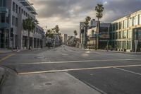 Empty City Street with Palm Trees and Modern Architecture in Los Angeles, California