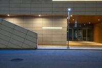 Empty Concrete Stairs and Illuminated Building Entrance at Night