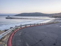 This breathtaking stock photo captures an empty highway near the ocean at dawn in California, USA. The stunning coastal scenery is accentuated by the presence of a pier near the water's edge, complete with a car parked on it. The architecture of the landscape is a visual delight, with the asphalt road curving gracefully along the shore. Lush trees dot the horizon, while magnificent mountains stand tall in the distance. The clear sky and calm sea create a serene atmosphere, making this image a perfect representation of the natural beauty that California has to offer. The road surface, bridge, and guard rail showcase the sturdy infrastructure of the area. Whether used for travel or recreation, this photo is a fantastic choice for projects related to transport, water resources, or any subject requiring the inclusion of a coastal setting. The jetty and pier are additional features that add interest and depth to the composition. Experience the sense of freedom and adventure that comes with venturing along this scenic thoroughfare. With its evocative atmosphere and rich details, this image is sure to enhance any creative project or design.
