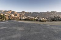 An empty highway in Ojai, California, surrounded by mountainous landscapes and trees. The clear sky enhances the natural beauty of this rural and wilderness area. A serene dawn scene in the heart of nature.