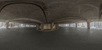 an empty parking garage with arches and arches painted white and black, with the floor painted gray