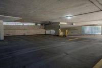 This stock photo features an empty parking garage in Toronto, Ontario, Canada. The parking structure is made of composite material and has an open space design. The asphalt flooring provides a smooth road surface for vehicles. The urban design of the building includes a driveway entry and a gas fixture near a fire hydrant. The spacious interior is well-lit with ceiling lights. The photo was taken during the day, capturing the urban atmosphere of Toronto.