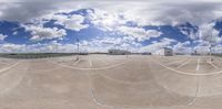 A wide, empty parking lot in Berlin with modern architecture in the background. The clear sky contrasts with the industrial feel of the concrete streets and warehouses. An open space in the heart of Europe.
