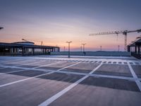 Empty Parking Lot with Building at Sunset, Berlin, Germany