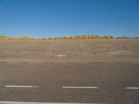An empty parking lot in Holland, with clear blue skies above. The vast landscape showcases the beauty of the Netherlands. The road surface and asphalt contrast with the serene surroundings. A peaceful day by the beach.