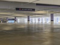 A modern parking garage in Los Angeles, California. The concrete structure features various flooring options and signage on the ceiling. The empty parking lot provides ample space for vehicles. A prime example of contemporary architecture in the city of angels.
