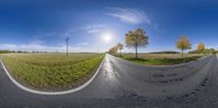 Empty Road in Berlin, Germany: A Field of Trees and Blue Sky