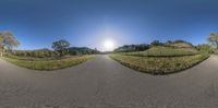 An empty road in California, surrounded by lush greenery. The road curves gently as it climbs up a highland hill, offering a panoramic view of the landscape. The tree in the foreground adds a touch of natural beauty.