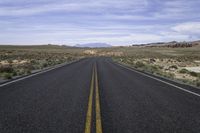Empty Road in the Desert Landscape with Yellow Lines