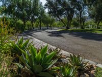 This stock photo features an empty road in the vibrant city of Los Angeles, California, USA. The clear sky and bright day create a stunning backdrop for the asphalt road, which is lined with beautiful plants in the foreground. The photo captures the essence of the urban landscape, with the hard shadows of the mountains casting an interesting contrast on the road. It is a great representation of the city's energy and charm.