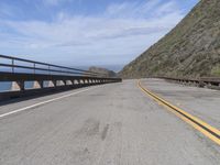 This stunning stock photo captures an empty road on the side of a cliff, leading straight into the vast ocean. Located in California, USA, this coastal landscape showcases the beauty of nature with its clear blue waters and picturesque view. The road, made of asphalt, stretches into the distance, bordered by a guard rail and surrounded by trees. The grey sky adds a touch of drama to the scene, making it a perfect image for various concepts like travel, adventure, and road trips on the iconic Pacific Coast Highway in Big Sur. The image also features infrastructure elements such as a bridge, highway, and lanes, making it suitable for illustrating concepts related to road networks and transportation. The straight road and yellow line create a sense of direction and perspective, while the Armco barrier adds a touch of safety and security. This versatile stock photo can be used for blogs, websites, and marketing materials related to travel, nature, coastal destinations, and more.
