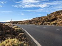 This stunning stock photo captures an empty road meandering through the majestic mountains of the Canary Islands in Tenerife, Spain. The undulating terrain of the road surface perfectly blends with the breathtaking natural landscape. As you gaze towards the horizon, you can admire the remarkable formations of the low-hanging clouds that hover above the picturesque mountain range. The asphalt road, surrounded by lush bushes and unspoiled nature, sets the scene for an adventurous journey through this rural part of Europe. The image is taken on a clear day, revealing the sheer beauty of the Canary Islands' mountains and the ethereal charm of its unexplored roads.