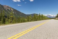 Empty Road Through Mountains and Pine Trees in Canada