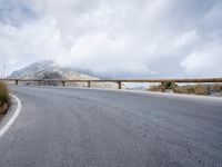 a very empty road next to a big mountain in italy by itself the mountains are visible