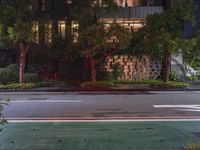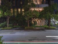 This stock photo shows an empty street that has been blocked off from traffic with caution tape. It is taken at night with artificial lighting illuminating the scene. The street is located in Taipei, Taiwan, in the Republic of China. In the background, there are modern buildings and houses, showcasing the urban architecture of the city. The road surface is asphalt, and there is grass and vegetation along the edges. The street is lined with street lights, providing a warm glow in the dark. This image captures the essence of city life and urban design in Taipei.