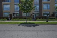 A peaceful and serene street in Canada, showcasing a residential building with tall windows. The street is lined with beautiful trees and colorful flowers in the front. The environment is calm and tranquil, making it an ideal place to call home. This residential area is located in Ontario, in the city of Toronto. The road surface is made of smooth asphalt, providing a comfortable driving experience. The surrounding neighborhood is full of green grass and vegetation, adding to the charm of the area. The architecture of the building is exquisite, making it an attractive property. This photo captures the essence of urban design in a peaceful and idyllic setting.
