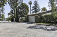 This photo captures an empty street corner in Los Angeles, California, USA. The street is lined with palm trees and bushes, and a stop sign stands on the corner. The architecture of the surrounding residential buildings is prominently displayed. The road is made of asphalt and is surrounded by grass and vegetation. The image showcases a typical day in a suburban neighborhood, highlighting the real estate and residential areas of Los Angeles. The property includes a driveway and is located near the iconic neighborhoods of Beverly Hills and Bel Air.
