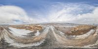 the reflection in a fisheye lens shows the scene in this photo of a large snow covered field
