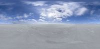 A clear day showcases the vastness of Salt Flats with the sun casting its glow over the expansive desert landscape, creating a sunny and serene environment.