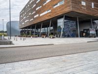 This is an image of the entrance to a modern building in Holland. The building features lots of windows, giving it a sleek and contemporary architectural design. Outside, there is a brick driveway, adding to the urban aesthetic of the area. The image captures the vibrant city life of Holland, with shops, cafes, and restaurants lining the streets. The clear sky above emphasizes the modern architecture and urban design of the area. This photo represents the bustling city and modern lifestyle in Holland, Netherlands.