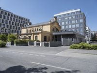 A clear sky over Berlin, Germany showcases a mix of classic and modern architecture. Streets lined with office buildings and residential properties depict a vibrant business district in this European city.