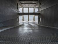 This image captures a modern architectural scene in Europe, specifically in Germany. The photo shows a concrete street leading towards a large open space with a parallel parking deck. The symmetrical design of the buildings and the straight road create a sense of order and balance. The grey tints and shades of the concrete and the wooden flooring add to the overall aesthetic. This photo represents a typical day in the city, showcasing the beauty of modern architecture and urban landscapes in Germany.