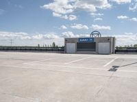 This image captures a modern parking garage in Berlin, Germany. The clear sky overhead provides a perfect backdrop for the sleek and contemporary architecture. The concrete street and open spaces create a spacious and organized parking lot. In the foreground, there is a designated area for motorcycles to drive. This photo highlights the combination of modern architecture and efficient parking solutions in Berlin, showcasing the city's commitment to urban planning and design.