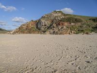 A breathtaking coastal landscape in Portugal, with sandy beaches and crystal-clear waters. Majestic mountains form a stunning backdrop against the clear blue sky. The rugged terrain is a testament to the natural beauty of Europe's open spaces.