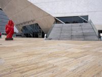 Modern architecture in the city of Porto, Portugal. The concrete structure and wood flooring create a futuristic and urban atmosphere. The open spaces and clear sky make it a popular tourist attraction in Europe.