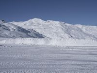 A breathtaking view of the snow-covered mountain range in the French Alps. The clear sky allows for a picturesque landscape. Tourists can enjoy skiing, hiking, and exploring the glacial terrain. The parking lot provides easy access to this popular tourist attraction in Europe.