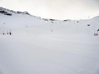 A gloomy winter day in the French Alps, with grey skies and snow-covered mountain slopes. The landscape is a tourist attraction, offering open spaces and stunning views of the mountain range. Perfect for skiing and winter recreation in Europe.