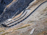 A breathtaking aerial view of the Stelvio Pass in South Tyrol, Italy. The winding road, surrounded by majestic mountains and lush green landscape, showcases the beauty of the European Alps. The Stelvio Pass is famous for its switchback curves and Armco barriers.