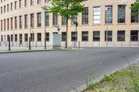 A classic European city scene in Berlin, Germany. The yellow and black fire hydrant contrasts with the urban architecture and asphalt road. This bustling city is a perfect blend of new and old.