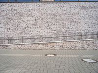 A modern architecture in Bremen, Germany. The city's grey brick walls and asphalt roads contrast with the vibrant green grass and vegetation. Wire fencing surrounds the public space, adding an urban design element.