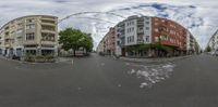 Aerial view of Berlin's urban landscape. Modern and classic architecture blend in the city's design. Streets with asphalt roads and residential buildings. Shadows create a dramatic contrast. A top-down perspective captures the essence of city life in Europe.
