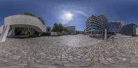 there is a view of the cobblestones in this photo from inside the fisheye lens