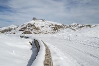 A picturesque landscape in the highlands of Italy. The road winds through the snowy terrain, surrounded by majestic mountains and glacial ice caps. The curve of the road adds to the charm of this European garden.