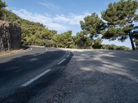 A scenic road in Mallorca, Balearic Islands, Europe. The asphalt and dirt surface creates an interesting contrast in the landscape. An open space surrounded by nature, perfect for a day of exploration.