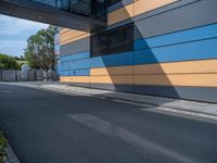 Industrial warehouse and storehouse in Germany, featuring modern architecture and a hard shadow in the day. Multicolored urban landscape with bridges and underpasses. Manufacturing and storage facilities in an industrial European setting.