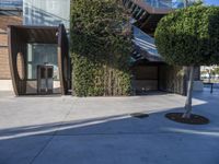 This is an image of a modern cityscape in Lisbon, Portugal. The photograph captures the vibrant city life with its contemporary architecture and urban design. The streets are lined with buildings and cafes, creating an open and welcoming atmosphere. The surface of the road and the concrete structures cast hard shadows, contrasting with the open spaces and vegetation in the neighborhood. This photo represents the blend of old and new in Lisbon, making it a perfect destination for those who appreciate the charm of European cities with a modern twist.