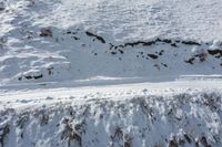A snow-covered mountain slope in Europe, with an ice cap at the peak. The glacial landscape provides an elevated and high nature experience. Off-road track winds through the frozen terrain.