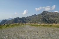 This is an image of a stop sign placed in a rocky area in Italy, Europe. The landscape showcases a grass and gravel surface with mountains in the distance. The cloudy sky adds depth to the scene, creating a picturesque view. This photo captures the beauty of nature and the tranquility of the European countryside. The stop sign serves as a reminder to take a moment and appreciate the surrounding landscape. It represents a peaceful day in nature, away from the hustle and bustle of city life.