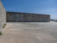 A clear sky day in Porto, Portugal, showcasing a concrete wall along the coastal open space. Ocean water meets the coastline, creating a serene beach atmosphere in Europe.