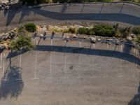 an overhead view of a basketball court and tennis courts near mountains in california with shadows