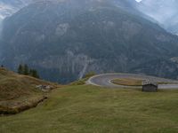 This image captures a beautiful landscape in Austria, Europe. The asphalt road winds through the mountainous terrain, surrounded by lush green grass and trees. The switchback curves offer a stunning view of the rural countryside, with the cloud-filled sky and cumulus clouds adding to the natural beauty. The vegetation and land lot showcase the diverse mountain landforms in Austria. This photo represents a peaceful day in the highlands of Austria, a perfect escape into nature.