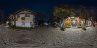 A charming evening scene in Lijiang, China. Cobbled streets and classic architecture create an old-world charm. The street is lined with shops, restaurants, and a place of worship. Experience the vibrant city life of this historic Chinese town.