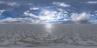 Bright sun shines over Salt Lake in Utah, USA. An expansive natural landscape featuring clouds, open spaces, and distant mountains. Enjoy a sunny day in the desert, capturing the essence of Salt Lake City's tranquil scenery.